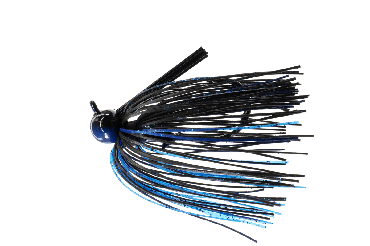 Renowned for rugged bass tackle, the Dirty Jigs Tour Level Football Jig features a traditional football‑head design that tracks steadily along the lake bottom. At 1/2 oz, it excels on deeper structure and during slow retrieves, while a stout Mustad UltraPoint hook ensures reliable hookups. The hand‑tied silicone skirt in Black & Blue provides lifelike movement and a natural silhouette that mimics crawfish and forage.